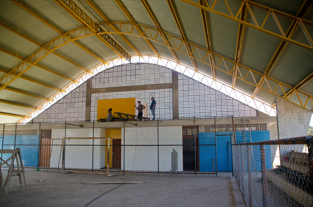entrega. Enquanto isso os alunos estão tendo aula de educação física no pátio